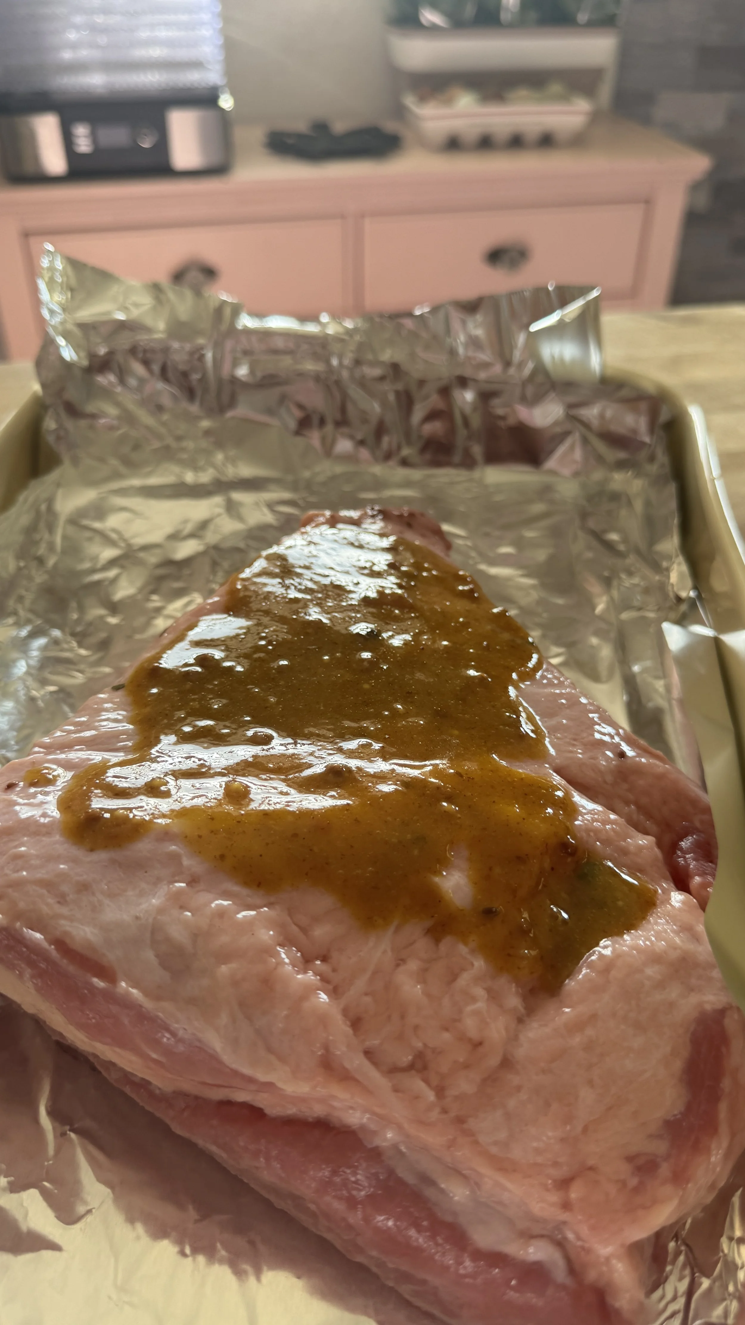 Spread honey mustard mix over the top.